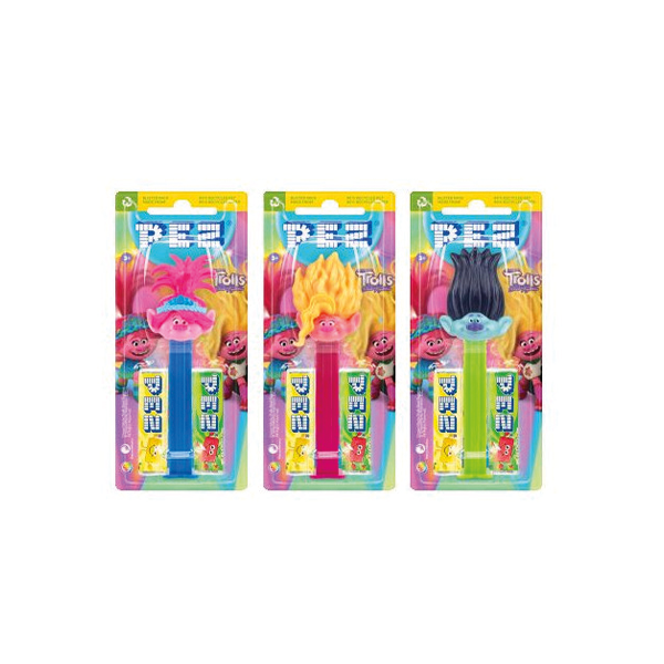 Scopri il divertimento colorato dei Trolls con il nuovo PEZ TROLLS! Ogni dispenser è abbinato a deliziose caramelle da 17 g, perfette da gustare in ogni momento. Ideale per bambini e collezionisti, questo display da 12 pezzi è perfetto per esposizione in negozio o per portare allegria a casa.