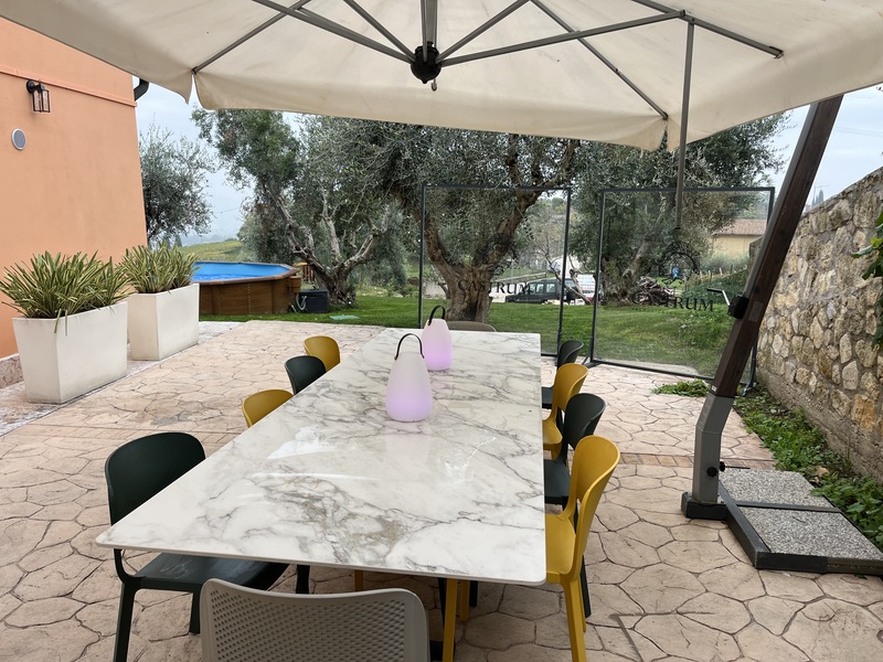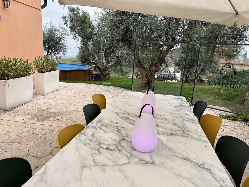 Castrum Wine Relais offre in uso esclusivo un’area di circa 1.000 m², immersa in un uliveto illuminato, perfetta per momenti di relax e convivialità.