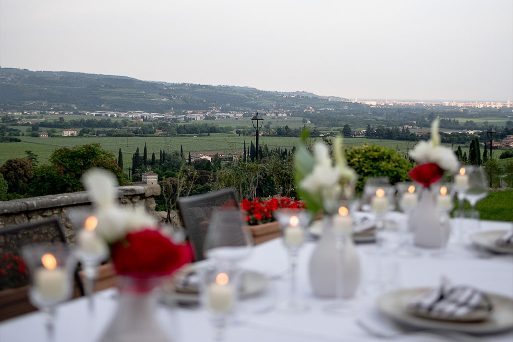 Scegli il Wine Relais “Castrum” come cornice per il tuo matrimonio in Valpolicella: terrazza panoramica, ampie zone coperte di pergole panoramiche, sale storiche e una cantina suggestiva renderanno indimenticabile il tuo giorno speciale. Ogni dettaglio, dall’allestimento al brindisi con Amarone, viene curato con passione per regalarti un’esperienza unica e personalizzata.