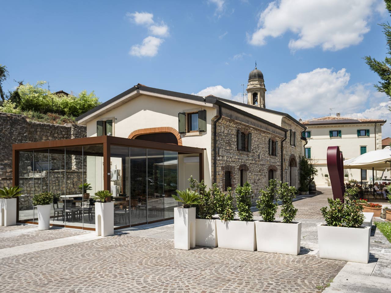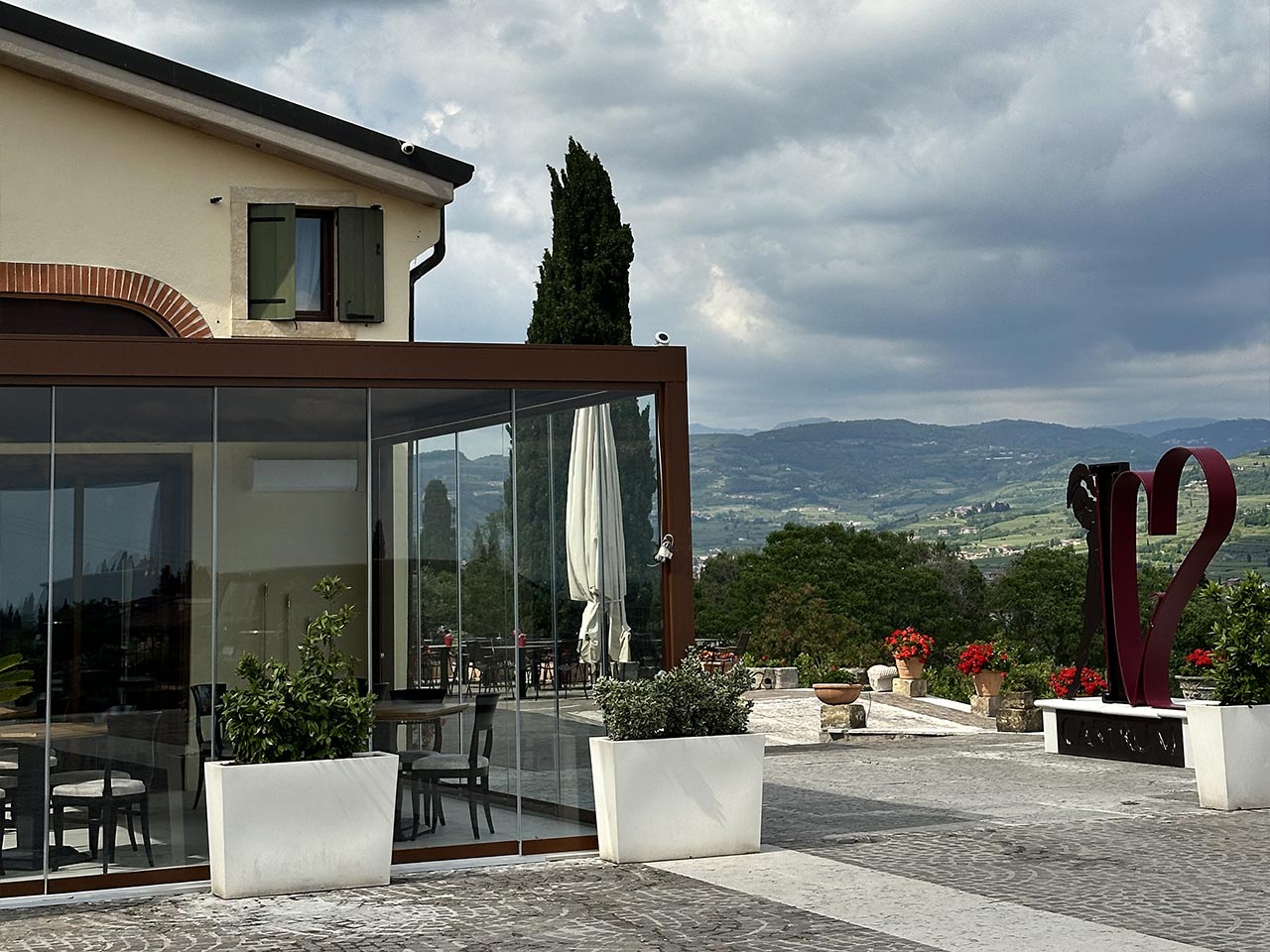 La posizione del CASTRUM è estremamente privilegiata perché si trova sulla sommità della collina centrale della vallata e dalla sua terrazza panoramica di oltre 1.000 mq puoi abbracciare l’intera Valpolicella Classica.