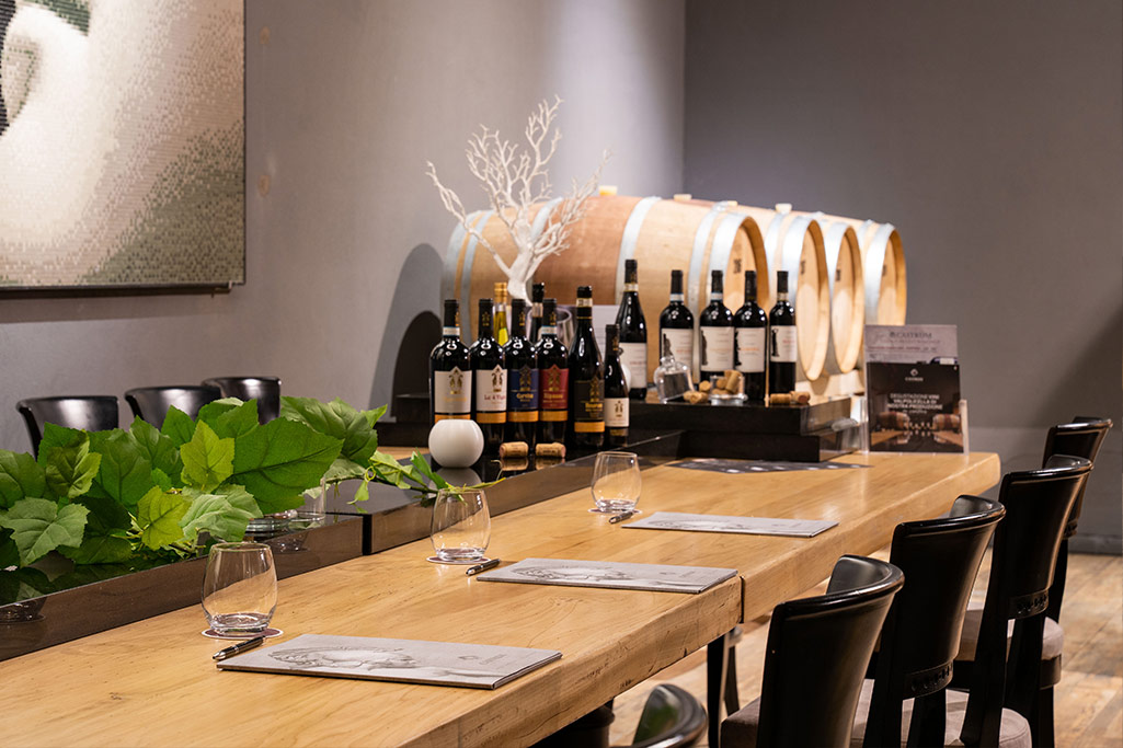 Il palco in legno e il grande tavolo da degustazione fanno della cantina il tuo spazio inedito per degustazioni, compleanni, anniversari, eventi in famiglia o incontri di lavoro.