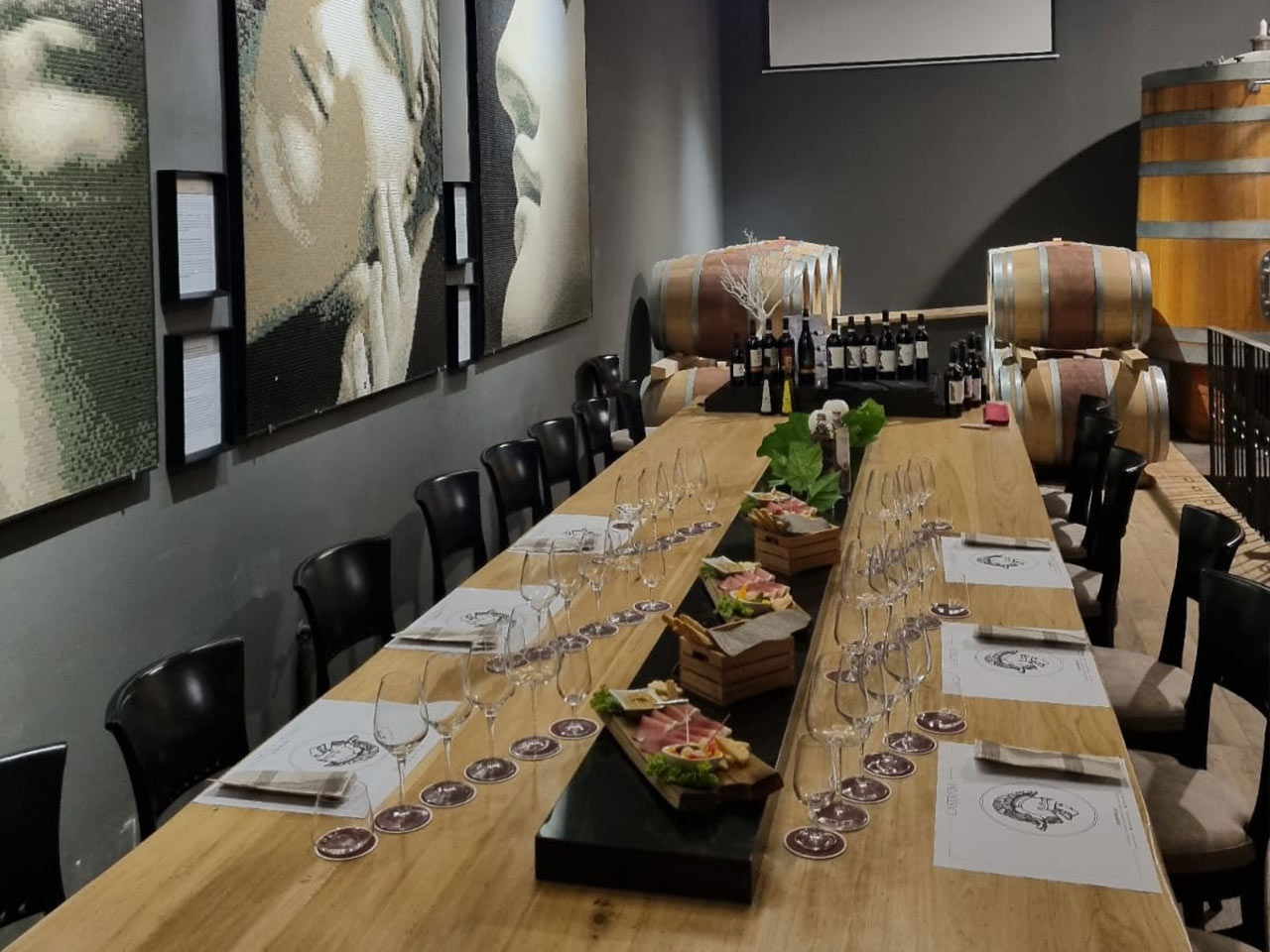 Nel 1983 Paolo Borghetti costruisce l’attuale cantina e nel 2021 il figlio Giampiero la fa ristrutturare nel segno dell’arte e dell’eleganza. Ritorna il filo conduttore delle opere dello scultore Fraccaroli evocate nei disegni sui mosaici giganti alle pareti.